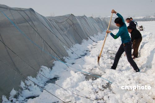 圖:安徽含山農(nóng)民雪后忙自救