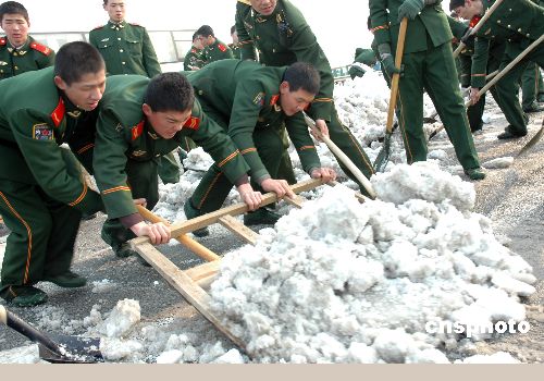 圖:武警江蘇總隊官兵“交通大動脈”上抗雪災