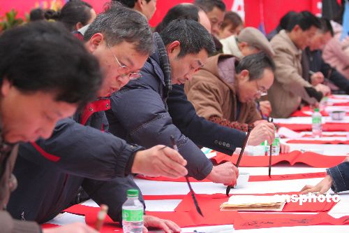 圖:重慶榮昌百名書(shū)法家冒寒上街義務(wù)寫(xiě)春聯(lián)