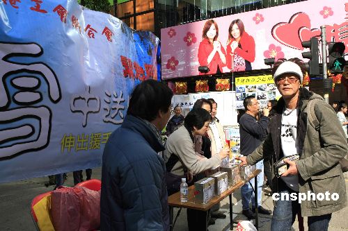 二月三日,香港工聯(lián)會的成員在街頭掛出“雪中送暖,伸出援手賑濟內(nèi)地受雪災(zāi)同胞”的條幅,募集善款,市民紛紛響應(yīng)。大陸南方連日遭受風(fēng)雪災(zāi)害,牽動著許多香港同胞的心,當(dāng)日還有多個團體為雪災(zāi)募款。中新社發(fā) 王麗南 攝