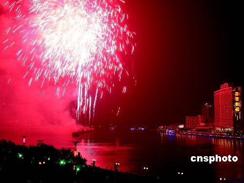 2月7日晚20點(diǎn)30分至21點(diǎn),2008年廣州市春節(jié)焰火晚會(huì)在珠江河段白鵝潭江面舉行。廣州市民及留守外來(lái)工一早就前往白鵝潭及珠江岸邊等候欣賞煙花美景。據(jù)了解,本次焰火晚會(huì)首次采用了全新的情景劇式音樂(lè)敘事燃放模式,采用高科技手段,突出嶺南文化。中新社發(fā) 呂明/吳呂明 攝
