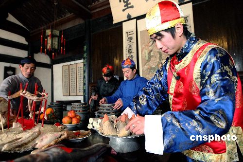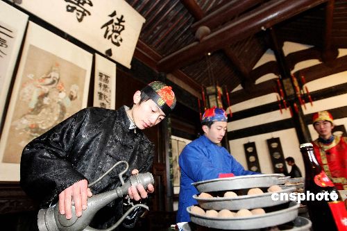 2月8日,紹興魯迅故里舉行“祝!奔漓牖顒印.(dāng)日是農(nóng)歷正月初二,浙江紹興魯迅故里在周家老臺門模仿魯迅小說《祝!返膱鼍,從正月初一至初五每天進(jìn)行紹興傳統(tǒng)年俗“祝!眻鼍氨硌。紹興的年俗“祝!币螋斞感≌f而名揚(yáng)天下,浙江省將紹興魯迅故里“祝!倍槲┮坏拇汗(jié)保護(hù)示范地。中新社發(fā) 袁云 攝