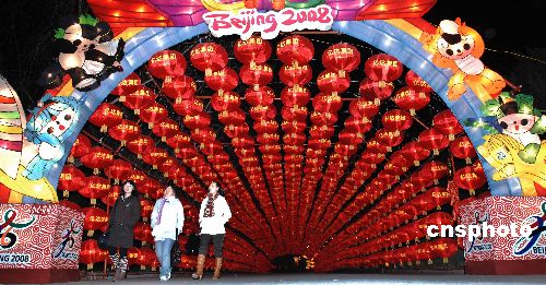 2月8日晚,眾多市民和游人紛紛來到大連勞動公園欣賞奧運(yùn)主題的彩燈。以“輝煌奧運(yùn)”為主題的2008迎春游園燈會2月7日至2月24日在大連勞動公園舉行。本屆迎春游園燈會由“喜迎奧運(yùn)”、“祖國繁榮”、“浪漫大連”、“金鼠送!、“童話故事”5個系列組織50余盞大型燈組組成。除設(shè)燈飾展區(qū)外,還設(shè)有民俗表演區(qū)、南北風(fēng)味小吃區(qū)、游藝游樂區(qū)、民間技藝展示區(qū)和地面焰火表演區(qū)。中新社發(fā) 劉德斌 攝