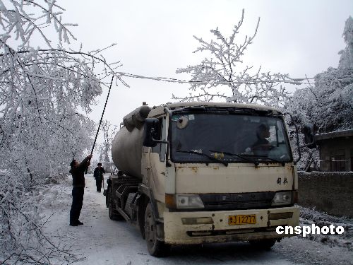 1月14日以來,貴州出現(xiàn)50年罕見的雪凝天氣。截至2月14日,當(dāng)?shù)乇鶅鰵夂蛞琅f持續(xù),這給搶險救災(zāi)帶來困難。中新社發(fā) 易勝武 攝