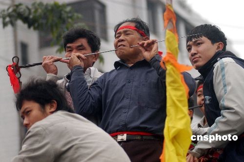 2008年2月16日,瓊海市,祈求五谷豐登,風(fēng)調(diào)雨順。“軍坡”是海南民間的一個(gè)傳統(tǒng)節(jié)日,相傳源于唐代,為紀(jì)念六世紀(jì)我國(guó)嶺南著名俚人首領(lǐng)冼夫人而舉行的祭祀活動(dòng),距今已有1300多年歷史。獨(dú)特的民俗風(fēng)情吸引了大批游客。中新社發(fā) 蒙鐘德 攝