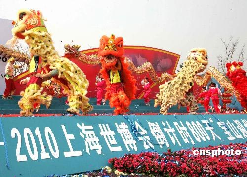 圖:上海舞龍舞獅歡慶世博會倒計時八百天
