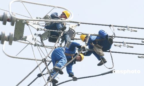 2月23日,全國(guó)第一條因暴雪災(zāi)害,導(dǎo)致輸電線路鐵塔倒塌的三峽電力送往華東的大動(dòng)脈±500千伏湖北宜昌至上海華新直流輸電線路,安徽境內(nèi)搶修工作全部接束,中斷37天的500千伏宜華線恢復(fù)貫通。1月17日,該輸電線路﹟1146-﹟1153段4座位于大別山腹地安徽六安境內(nèi)崇山峻嶺中的巨型鐵塔被冰雪壓塌,線路嚴(yán)重受損。災(zāi)害發(fā)生后,安徽省電力公司500多名搶險(xiǎn)人員和當(dāng)?shù)財(cái)?shù)百干部群眾克服天寒地凍、山路陡峭等困難,奮力搶修,經(jīng)過37天艱苦奮戰(zhàn),運(yùn)送搶險(xiǎn)物資150多噸,終于將4座倒塌鐵塔重新修建完成,宜華線路全線貫通。中新社發(fā) 陳超平 攝
