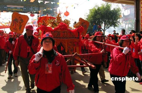 2月27日,馬祖境媽祖金身鑾駕抵達(dá)連江縣壺江島,受到當(dāng)?shù)匦疟姛崃覛g迎。據(jù)悉,此次馬祖鄉(xiāng)親二百人組團(tuán)攜媽祖金身,前來參加在連江壺江舉辦的連江縣第二屆媽祖文化節(jié),這是二百多年來,馬祖境馬港天后宮媽祖金身首次回到祖鑾。中新社發(fā) 林維莉 攝