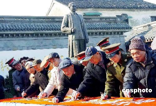 3月4日,浙江紹興市各界和杭州市的1000多名干部群眾、解放軍官兵來到紹興周恩來紀念館舉行重溫入黨誓言,簽名學習總理風范紀念活動。3月5日是周恩來誕辰110周年。中新社發(fā) 袁云 攝