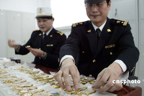 3月5日,遼寧丹東海關(guān)在公路口岸監(jiān)管進(jìn)出境旅客時(shí),從朝鮮入境的兩名中國(guó)旅客隨身攜帶的包裹中查獲涉嫌侵犯知識(shí)產(chǎn)權(quán)的手表共計(jì)88塊,包括勞力士、雷達(dá)、浪琴等六種世界知名品牌。這是丹東海關(guān)自開(kāi)展知識(shí)產(chǎn)權(quán)海關(guān)保護(hù)工作中查獲的最大一起涉嫌案件。中新社發(fā) 陳浩浩 攝