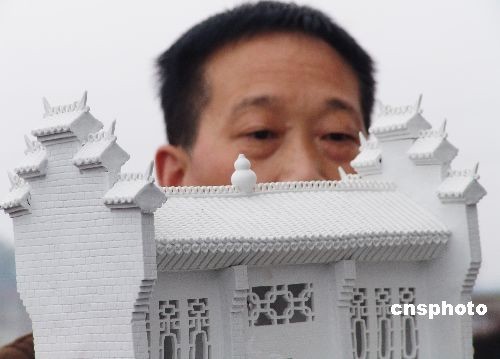 3月8日,江西省景德鎮(zhèn)羅冬根展示作品瓷器群雕《大觀園》。景德鎮(zhèn)陶藝家羅冬根用6年的時(shí)間,制作出面積達(dá)80平方米,主件有300多件的瓷器群雕作品《大觀園》。這部作品由建筑、園林、山水、民俗等部分組成,采用高白泥澀胎瓷制成,取題于《紅樓夢(mèng)》大觀園,取材于蘇州園林和江南徽派建筑。中新社發(fā) 石衛(wèi)明 攝
