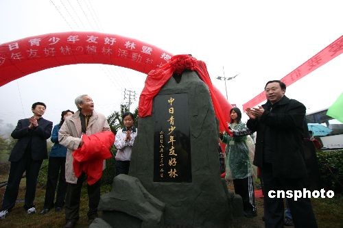 3月12日,日本青少年友好使者代表團第三分團的148名代表(其中高中生133名)來到重慶市永川區(qū),與永川中學的學生結成對子,手拉手地到環(huán)北路種植“中日青少年友好林”。中新社發(fā) 陳仕川 攝