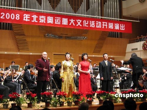 3月20日晚,北京音樂廳上演由中央歌劇院演出的2008年北京奧運重大文化活動開幕音樂會,正式奏響奧運重大文化活動的演出序曲。自此至9月半年時間內(nèi),眾多優(yōu)秀劇目將陸續(xù)在北京舞臺展演。中新社發(fā) 王彤 攝