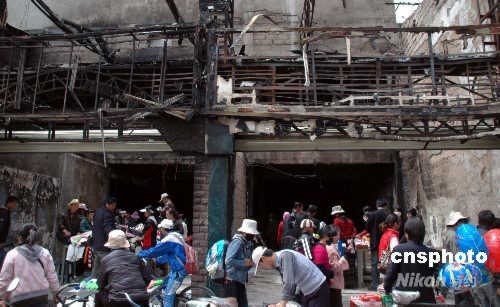4月12日,昔日繁華似錦的拉薩市朵森格路又恢復(fù)了往日的景象。街道上車水馬龍,人來(lái)人往,各種商品琳瑯滿目,選購(gòu)的人們絡(luò)繹不絕,盡管在“3.14”暴力事件中許多被焚燒成廢墟的經(jīng)營(yíng)大樓還處在修復(fù)之中,但整個(gè)市場(chǎng)交易已呈現(xiàn)出十分火紅的景象。中新社發(fā) 周波 攝
