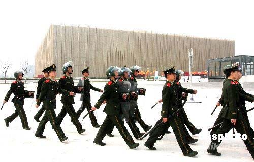 圖:北京奧林匹克籃球館周邊加強(qiáng)安保