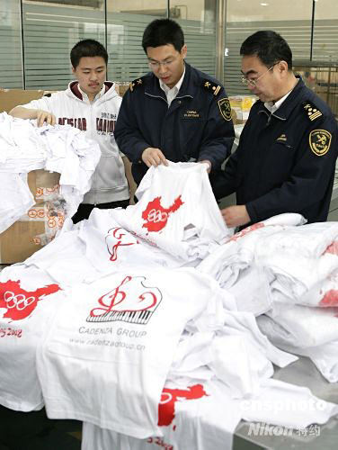圖:北京海關(guān)查獲侵犯奧運知識產(chǎn)權(quán)服裝