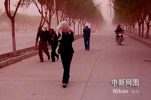 5月7日19點(diǎn)30分,一場(chǎng)特大沙塵暴襲擊了玉門市整個(gè)地區(qū),瞬間新城被黃紅色的沙塵籠罩著。當(dāng)晚,玉門市出現(xiàn)伴有大風(fēng)的沙塵天氣,風(fēng)沙不到一小時(shí),整個(gè)天空變得昏暗黃紅,最低能見度為100米,這在玉門史上極為少見。萬宗平 攝