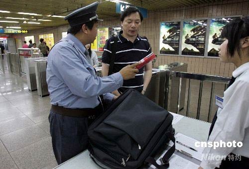 5月10日上午,在上海徐家匯地鐵站的安全檢查通道,一乘客因攜帶危險(xiǎn)物品被勸說退票。從今天起,上海軌道交通所有車站開辟專用安全檢查通道,由專人全天候逐一對(duì)乘客攜帶的箱包進(jìn)行安全檢查,據(jù)了解,從4月15日至今,上海軌交查堵危險(xiǎn)品1200余件。主要有液化氣鋼瓶、煙花、油漆、裝修膠水等,其中,依法對(duì)700余名違法攜帶危險(xiǎn)物品的人員依法做出行政處罰。中新社發(fā) 潘索菲 攝
