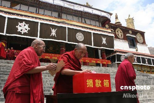 拉薩哲蚌寺僧人為四川地震災(zāi)區(qū)捐款