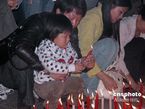圖:昆明市民為地震災(zāi)區(qū)祈禱