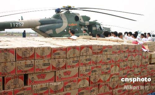 圖:成都機(jī)場(chǎng)救災(zāi)物資云集