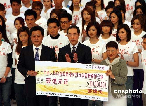 圖:邵逸夫爵士向四川災(zāi)區(qū)捐款一億港幣