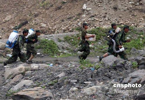 圖:解放軍防疫部隊緊急進(jìn)入汶川重災(zāi)區(qū)
