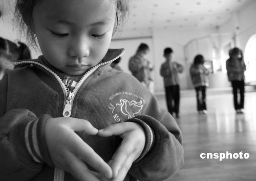5月19日是國務院公布的全國哀悼日的第一天。當日14點28分,山東省濱州市小白鴿幼兒園的22名小朋友在老師的指導下,圍成了“愛國心”圖案。與此同時,這22名小朋友們還用稚嫩的小手擺出了“愛國心”手勢,并在哀樂聲中默哀3分鐘,以表達他們對四川汶川大地震遇難者的哀思之情。中新社發(fā) 郭志華 攝