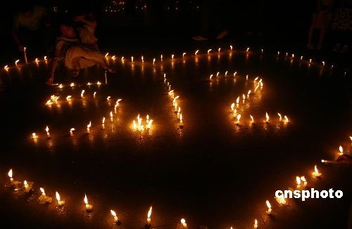 5月19日晚,漢口江灘燭光閃耀,國(guó)歌嘹亮,上萬(wàn)武漢市民自發(fā)來(lái)到江灘為在5.12地震中罹難的同胞默哀。