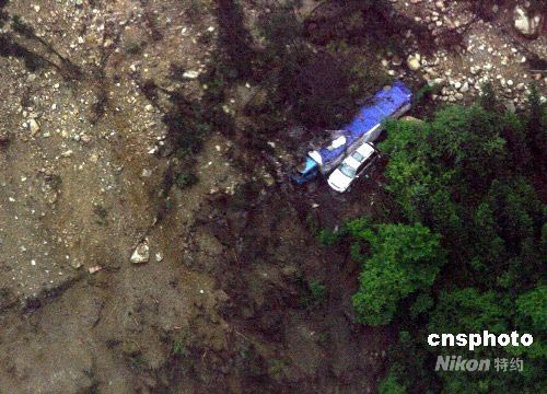 汶川大地震塌方公路上汽車遇險驚險萬分