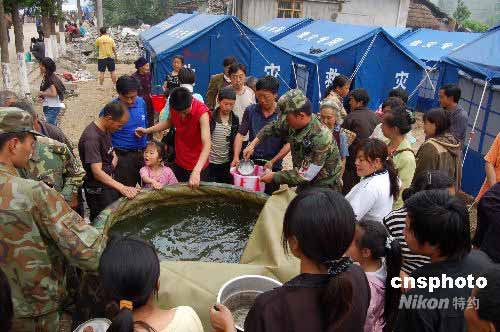 圖:解放軍為地震災(zāi)區(qū)送安全飲用水