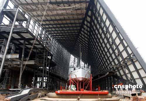 5月25日,經(jīng)過10天的搬遷,一代名艦中山艦終于抵達(dá)武漢金口中山艦博物館內(nèi),并將在此永遠(yuǎn)安家落戶,預(yù)計(jì)明年正式對外開放。中新社發(fā) 張暢 攝