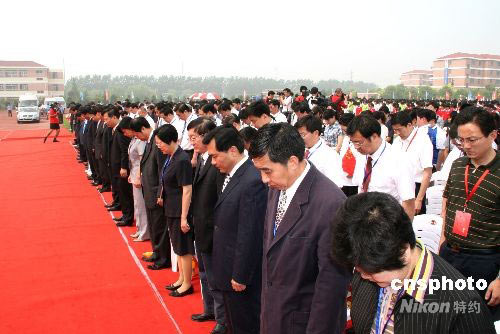 圖:奧運(yùn)圣火泰州傳遞 向地震遇難者默哀