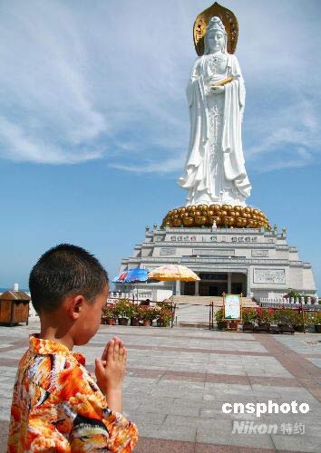 地震受災兒童三亞南山108米海上觀音前祈福