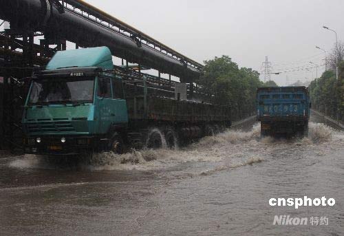 從6月8日開始,湖南省婁底市遭遇強(qiáng)降雨,大部分地區(qū)出現(xiàn)雷雨大風(fēng)。不少低洼處嚴(yán)重積水,給行人帶來不便。湖南省氣象臺(tái)6月9日12時(shí)09分對(duì)婁底市境內(nèi)發(fā)布暴雨橙色預(yù)警。婁底市政府已啟動(dòng)防汛預(yù)警預(yù)案,防汛進(jìn)入臨戰(zhàn)狀態(tài)。中新社發(fā) 郭國(guó)權(quán) 攝