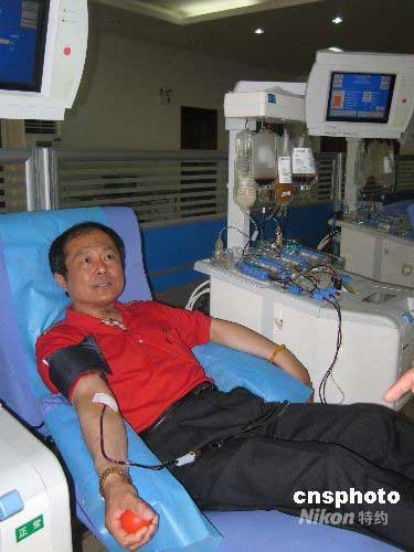 6月14日,堅(jiān)持30年,義務(wù)鮮血超過(guò)2萬(wàn)CC的天津康農(nóng)食品有限公司董事長(zhǎng)林易陞走進(jìn)天津市血液中心,以捐獻(xiàn)成分血的實(shí)際行動(dòng),詮釋今年世界獻(xiàn)血者日主題:定期獻(xiàn)血。中新社發(fā) 田齊 攝