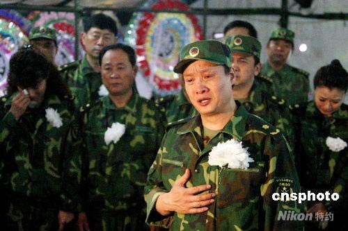 6月22日,閻維文、黃宏、夢歌、蔡國慶、白雪等著名軍旅藝術家來到四川都江堰悼念抗震救災烈士武文斌。圖為閻維文在烈士的遺像前清唱一首《心肝情愿》告慰英靈。中新社發(fā) 曾憲平 攝