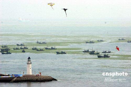 近期,青島近海出現(xiàn)漂浮海藻。經(jīng)專家初步鑒定該漂浮海藻為滸苔,與2007年青島沿岸出現(xiàn)的漂浮海藻情況基本一致。滸苔屬全球分布的種類,既可分布在海水中,也可以在淡水中生長,甚至有可能附著在船舶上,生長期一般在15天左右,當(dāng)藻體變黃發(fā)黑時即死亡。滸苔可作飼料,也可供藥用。預(yù)計隨氣候等環(huán)境改變,青島海域滸苔將消失。目前,青島市海洋與漁業(yè)局已根據(jù)其發(fā)展情況采取了相應(yīng)措施,確保不會影響到奧帆賽正常舉行。中新社發(fā) 呼蘭江 攝