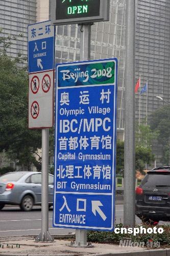 圖:奧運(yùn)專用指路標(biāo)識亮相北京街頭