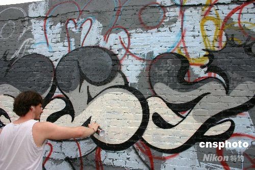 日前,在北京798藝術(shù)院區(qū)南側(cè)部分外墻被一些年輕的藝術(shù)家們裝扮繪制成了奧運(yùn)文化墻,構(gòu)圖色彩十分醒目,甚是好看。中新社發(fā) 郭海鵬 攝