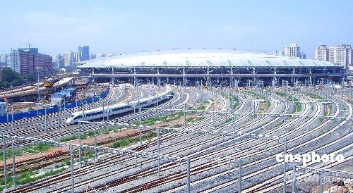 7月6日,北京新南站在藍(lán)天的映襯下顯得更加美麗壯觀。當(dāng)日上午,京津兩地記者以及邀請到的市民代表200多人登上列車,從北京南站出發(fā),平穩(wěn)運行32分鐘后,于9點28分到達(dá)天津站,順利完成列車的首次載客試運營。中新社發(fā) 玉龍 攝