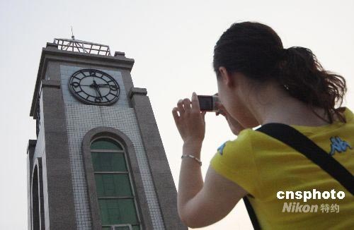 7月11日,四川綿竹漢旺鎮(zhèn)永遠(yuǎn)定格14時(shí)28分的鐘樓吸引路人拍照留念。據(jù)悉,地震后一周,綿竹市決定建立漢旺地震遺址公園,計(jì)劃以漢旺鐘樓為中心,修建地震遺址公園,相關(guān)規(guī)劃已經(jīng)匯報(bào)四川省級部門。中新社發(fā) 吳芒子 攝