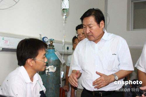 圖:趙鐵錘看望"7·21"煤礦透水事故獲救礦工