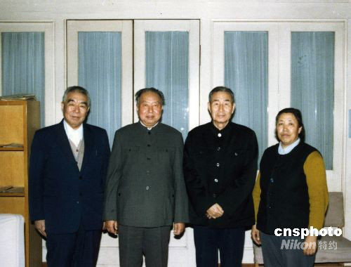 圖為1988年4月,華國(guó)鋒和夫人在家中會(huì)見(jiàn)抗日戰(zhàn)爭(zhēng)時(shí)期在一起工作過(guò)的老戰(zhàn)友。