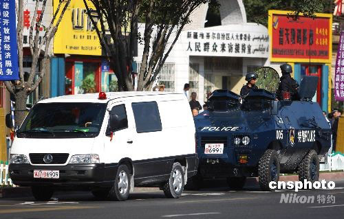 9月1日,武裝特警乘坐裝甲車在新疆烏魯木齊國(guó)際博覽中心附近執(zhí)行警戒任務(wù)。當(dāng)天上午,第17屆烏魯木齊對(duì)外經(jīng)濟(jì)貿(mào)易洽談會(huì)在新疆國(guó)際博覽中心拉開帷幕。由中國(guó)商務(wù)部、中國(guó)貿(mào)促會(huì)、新疆維吾爾自治區(qū)人民政府共同主辦的“烏洽會(huì)”已成功舉辦了16屆,如今已成為中國(guó)向西開放的窗口和平臺(tái)。據(jù)悉,本屆“烏洽會(huì)”期間還將舉行中西南亞區(qū)域經(jīng)濟(jì)合作高層論壇、“土耳其商務(wù)日”、中外企業(yè)家項(xiàng)目對(duì)接洽談會(huì)等系列活動(dòng)。中新社發(fā) 劉新 攝