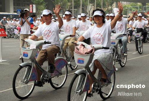 9月12日,上海誕生首個禮儀單車隊,600名“迎世博文明禮儀宣傳員”以自行車為綠色出行工具,帶頭遵守文明規(guī)范,示范文明禮儀。中新社發(fā) 潘索菲 攝