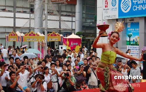 9月12日,由泰國駐南寧總領(lǐng)事館主辦的“2008南寧市泰國風(fēng)情節(jié)”在廣西南寧開幕,泰國演員的表演吸引了大批攝影愛好者和觀眾。本次風(fēng)情節(jié)為期三天,通過文藝表演、商品推介等形式全面推介泰國旅游、美食、手工藝品等。中新社發(fā) 劉萬強 攝