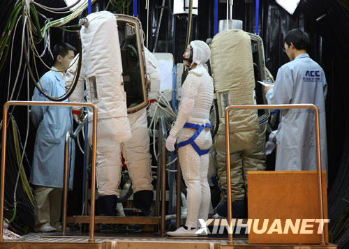 航天員的安全和健康的研究是空間技術(shù)發(fā)展的一個重點,航天員訓(xùn)練中心里有各種各樣幫助航天員適應(yīng)太空生活的模擬艙。為了戰(zhàn)勝可能出現(xiàn)的低壓和缺氧威脅,在低壓艙鍛煉超強的耐受力成為航天員的“必修課”。 當航天員穿上特制的航天服走進低壓艙之后,艙內(nèi)的空氣就被抽掉,航天員此時就開始進入“太空”。