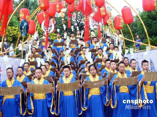 2008年9月27日,四川•南充第二屆三國(guó)文化節(jié)在南充萬(wàn)卷樓景區(qū)隆重開幕。三國(guó)文化節(jié)以豐富多彩的文化活動(dòng),充分展示南充“三國(guó)文化之源”的深厚內(nèi)涵與璀璨的文化特色。中新社發(fā) 陳宏 攝