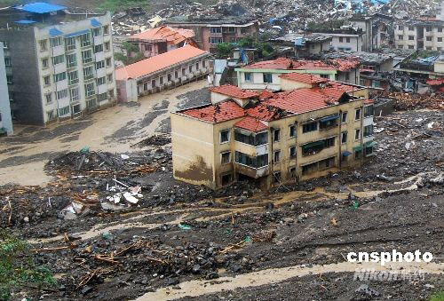 圖:泥石流吞沒(méi)大半個(gè)北川老城
